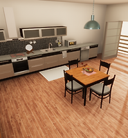 빛이 들어오는 창문과, 문 그리고 방을 환하게 하기 위해 천장에 Area Light들을 넣어주었습니다. 그리고 현실에서 주로 light이 있을것 같은곳에 point light들을 심어 주었습니다.