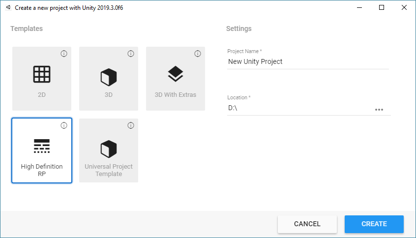HDRP 프로젝트를 시작하는 방법이 크게 두 가지가 있습니다.