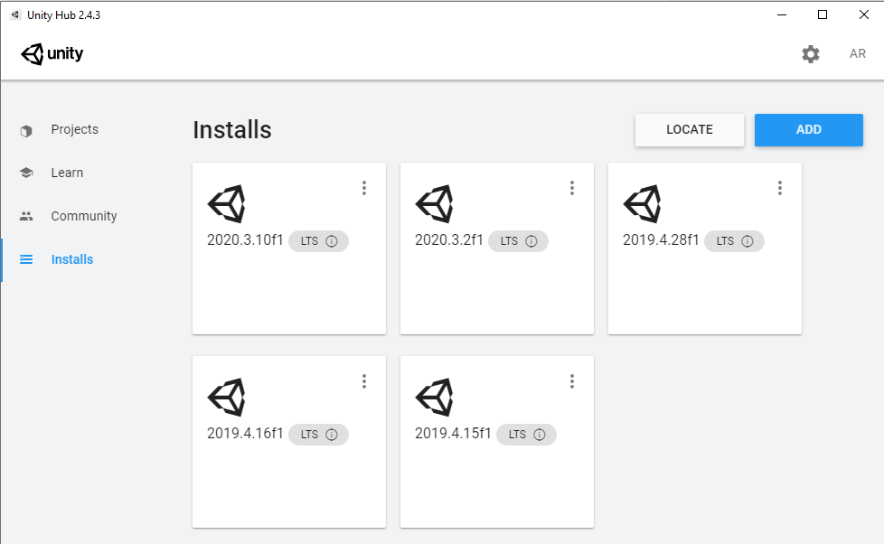 인스톨 탭에서는 지금 제 컴퓨터에 설치되어 있는 모든 유니티 버전이 통합 표시 됩니다. 저 같은 경우에는 2019 LTS 버전과 2020.3 버전도 보이네요. 여기에서 Add를 누르게 되면, 최신 버전들을 확인 하실 수 있습니다. 여기 보이는 버전 이외에 다른 버전이 필요할 경우에는 download archive를 눌러 필요한 버전을 찾아 install 할 수 있습니다. 여기 Unity Hub를 누르면 바로 Hub에 연동되어서 Install 됩니다. 그럼 원하시는 Unity 버전을 인스톨 해주세요.